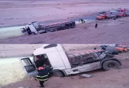 واژگونی تریلی حامل گوگرد در جاده سرخس
