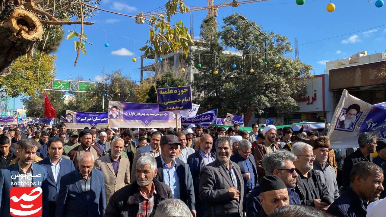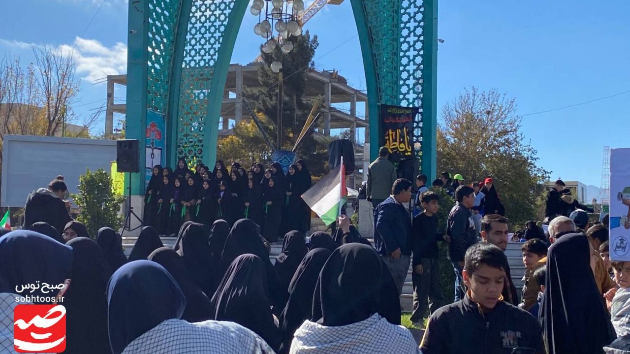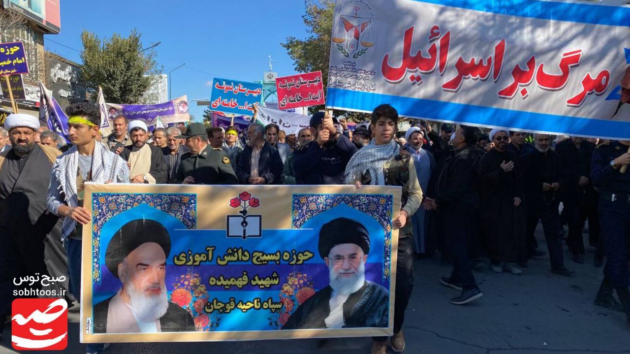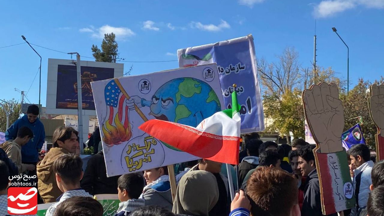 به گزارش پایگاه خبری تحلیلی «صبح توس »؛ در سالروز گرامیداشت روز ملی مبارزه با استکبار جهانی مردم مؤمن و انقلابی شهرستان قوچان همراه با دانشآموزان، فرهنگیان و اقشار مختلف، با حضوری پرشور و وحدتآفرین در راهپیمایی سراسری شرکت کردند و با در دست داشتن پرچمهای جمهوری اسلامی ایران و پلاکاردهایی با شعارهای انقلابی، بار دیگر وفاداری خود به آرمانهای امام خمینی (ره) و رهبر معظم انقلاب اسلامی را به نمایش گذاشتند.