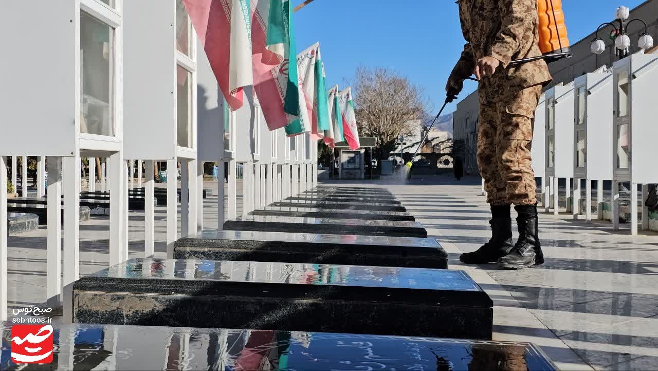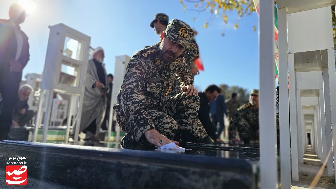 به گزارش پایگاه خبری تحلیلی «صبح توس»؛ همزمان هفته بسیج مراسم غبار روبی و عطر افشانی مزار شهدا در امامزاده سید حمزه (ع) کاشمر با حضور بسیجیان و مسئولان شهرستان برگزار شد.