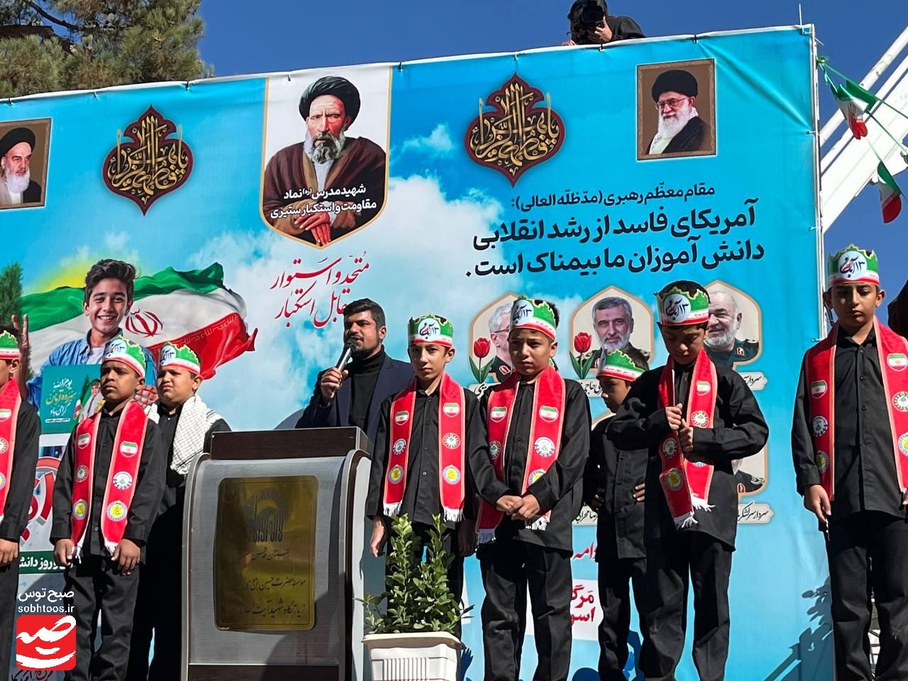 به گزارش پایگاه خبری تحلیلی «صبح توس»؛ راهپیمایی یومالله ۱۳ آبان با حضور پرشور اقشار مختلف مردم و دانشآموزان در کاشمر علیه استکبار جهانی از میدان مرکزی تا میدان آزادی برگزار شد.