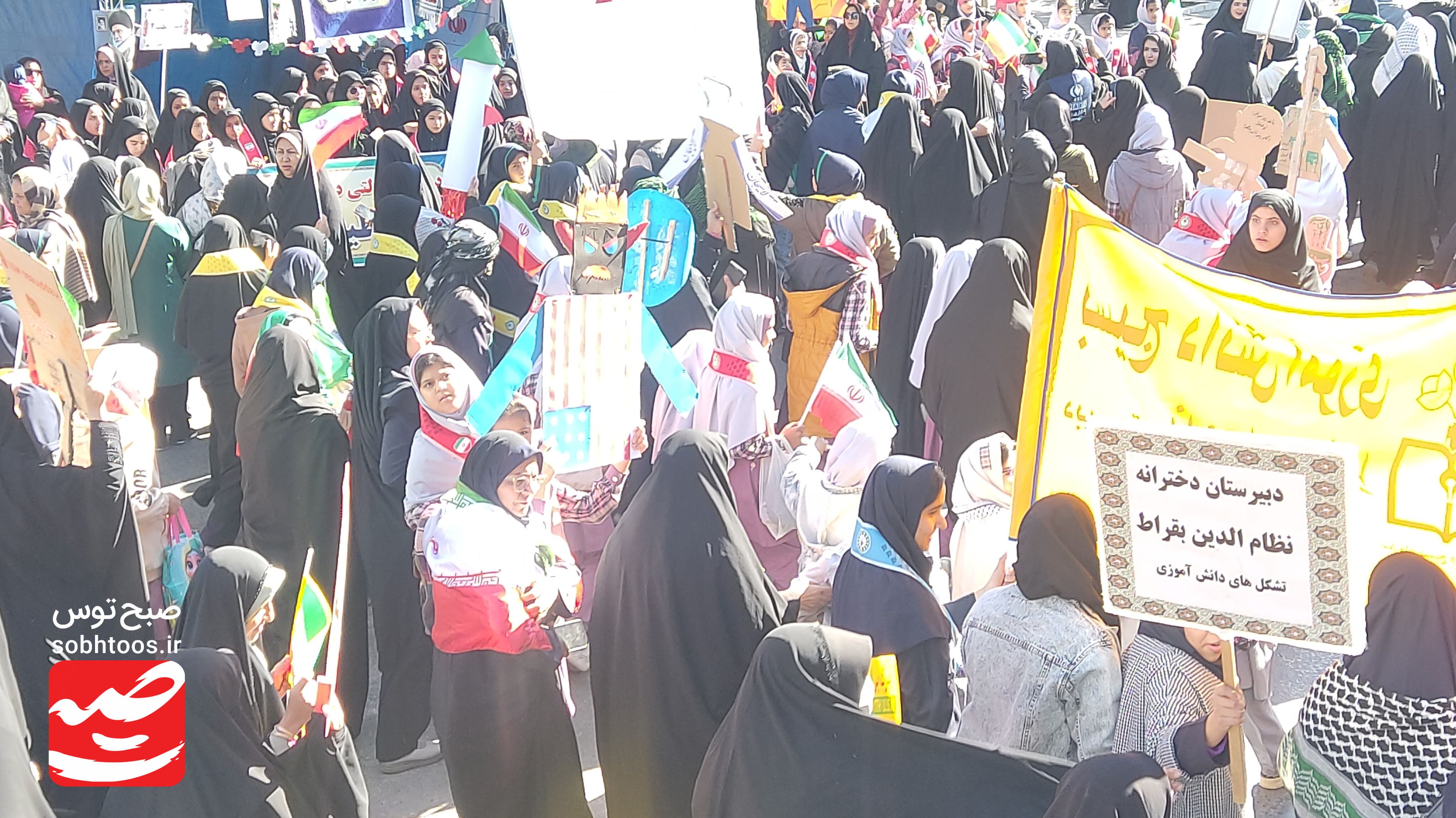 به گزارش خبرنگار گروه سیاسی پایگاه خبری تحلیلی «صبح توس»؛ راهپیمایی ۱۳ آبان در نیشابور صبح امروز از مقابل اداره آموزشوپرورش نیشابور آغاز و تا مقابل مسجد جامع این شهرستان ادامه یافت.