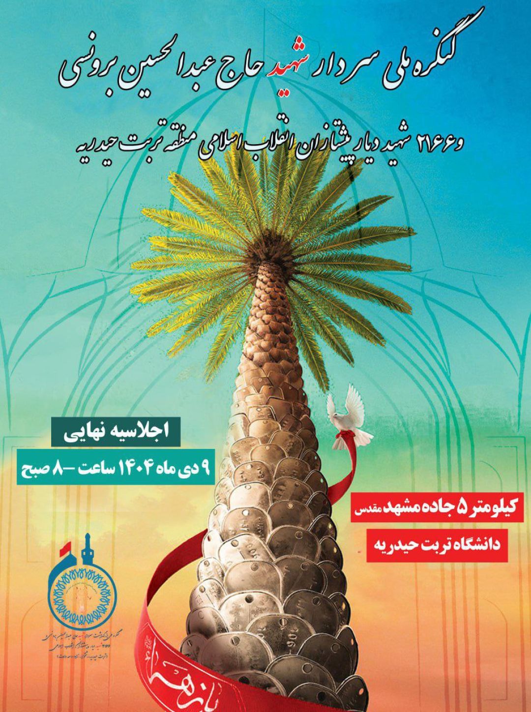 اجلاسیه نهایی کنگره سردار شهید حاج عبدالحسین برونسی و ۲۱۶۶ شهید منطقه تربتحیدریه روز نهم دیماه جاری همزمان با سالروز قیام انقلابی مردم این خطه در سالن همایشهای زندهیاد محمود کریمی دانشگاه تربتحیدریه برگزار میشود.