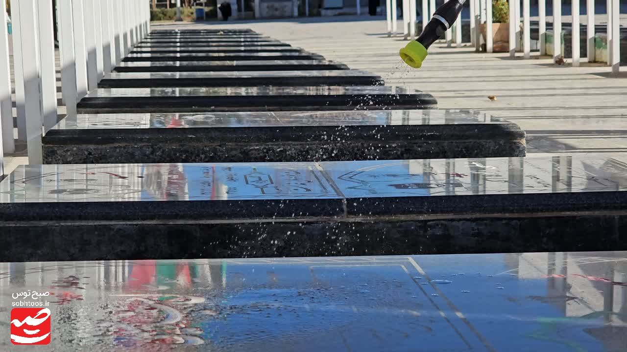 به گزارش پایگاه خبری تحلیلی «صبح توس»؛ همزمان هفته بسیج مراسم غبار روبی و عطر افشانی مزار شهدا در امامزاده سید حمزه (ع) کاشمر با حضور بسیجیان و مسئولان شهرستان برگزار شد.